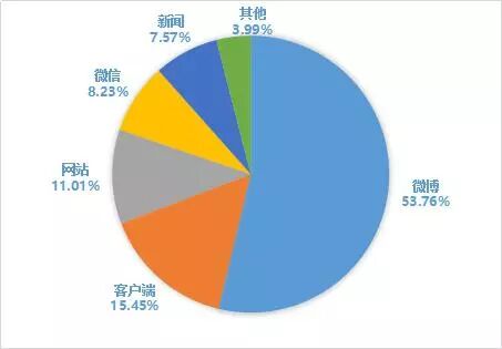 根据百问舆情大数据监测系统显示,该事件以微博为主要传播途径,微博传播量占53.76%;客户端传播量占15.45%;网站的传播量占11.01%;微信传播量8.23%;新闻传播量7.57%;其他来源传播量占3.99%(包括政务、报刊、论坛、视频等)。